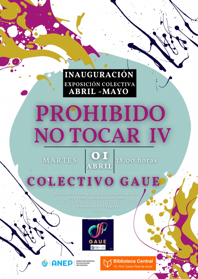 Todos invitados este martes 1° de abril de 2025 a las 18:00 horas para la inauguración de la Exposición “Prohibido No Tocar IV” en Sala de Lectura de Biblioteca Central de Educación Secundaria Dr. Prof. Carlos Real de Azúa.