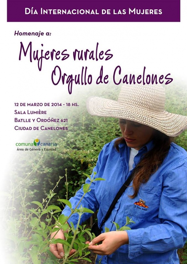 La Intendencia de Canelones rindió homenaje a las mujeres rurales, nucleadas en asociaciones, sociedades de fomento, asamblea de vecinos, cooperativas y redes de grupo, en reconocimiento a sus trabajos colectivos; la selección fue hecha por los propios grupos y la Comuna Canaria.