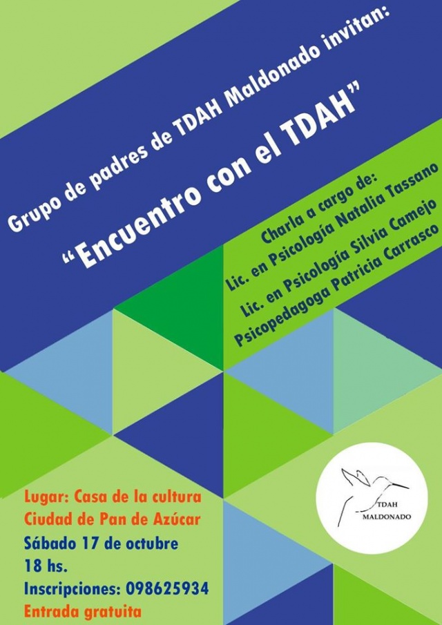 La Asociación de Padres TDAH Maldonado y la sociead civil de Pan de Azúcar, con el apoyo de la Red Departamenal de EID´s de Maldonado, organizan una charla denominada Encuentro con el TDAH.