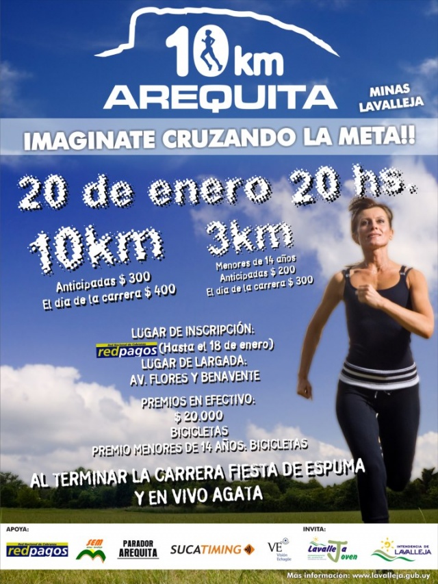 El próximo 20 de enero a las 20 hs se corre en Minas los 10km del Arequita 2da edición organizado por la oficina de la Juventud de la Intendencia de Lavalleja.