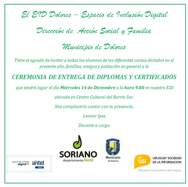 Los invitamos a acompañarnos a la entrega de certificados y diplomas de todas las capacitaciones dictadas durante este 2016.