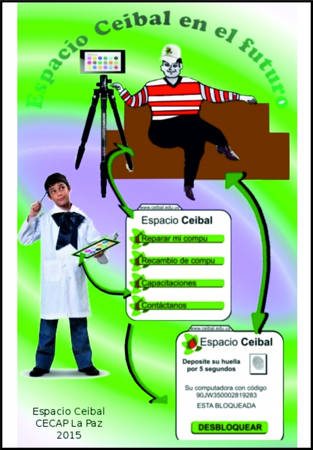 Mención trabajo en equipo: Espacio Ceibal - CECAP La Paz. Afiche “Ceibal + allá”.