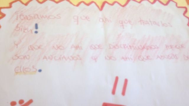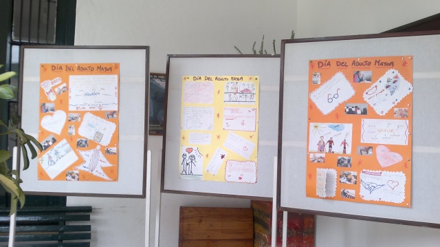Con montivo de celebrarse en el día de ayer el Día del Adulto Mayor, ya que concurren los dias martes, en un horario los niños del Hogar los Zorzales y en otro hr los adolescentes de dicho hogar, realizamos una actividad que me parecio buena para darles aliento y alegrar los corazones a todos los adultos mayores que concurren al centro, ya que de lunes a viernes se dictan cursos para adultos mayores a no ser estas hr que tienen los niños y adolescentes. El grupo de niños y despues mas tarde el de adolecentes realizaron una cartelera para la conmemoracion de este dia tan especial para el adulto mayor.