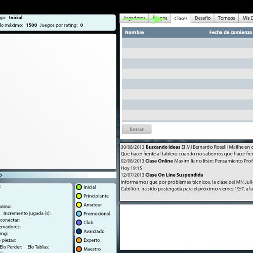 4.- A la hora del curso, ir a la pestaña clases y entrar en la de Ajedrez USI con el MI Bernardo Roselli. Ver imagen 03