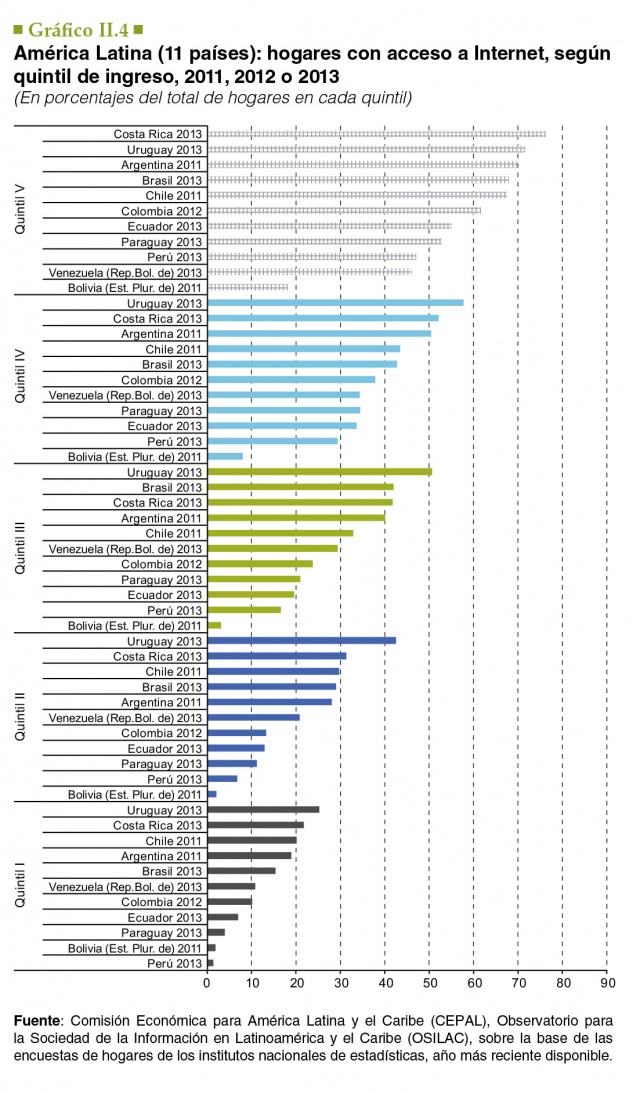 “...A diferencia de los países desarrollados, donde la masificación de Internet depende principalmente de preferencias individuales o limitantes generacionales, en los países de la región la difusión en los hogares está determinada por la disponibilidad de infraestructura y otras variables económicas, sociales y demográficas, tales como el lugar de vivienda o el nivel de ingreso...”