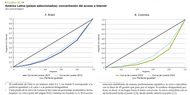 De acuerdo al informe, la desigualdad en el acceso a Internet decrece pero aún dista de ser eliminada. En 4 países esta disminuyó, destacando a Uruguay con la mejora más pronunciada, acercando a nuestro país a la curva de igualdad perfecta en materia de acceso.