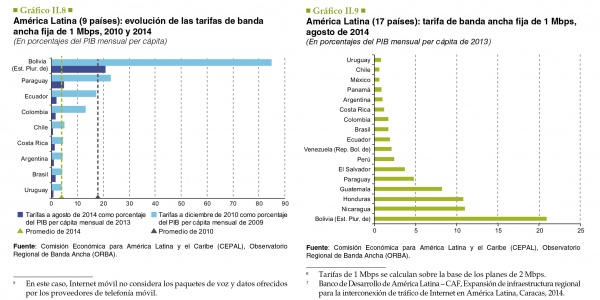 La asequibilidad del servicio de banda ancha fija se mide por el precio medio de 1 Mbps y la de la banda ancha móvil, por el precio medio al que se ofrece un plan de pospago de Internet móvil. El indicador más utilizado es una aproximación a la proporción del ingreso (PIB mensual per cápita) que debe destinarse para acceder al servicio de banda ancha: a menor proporción, mayor asequibilidad.