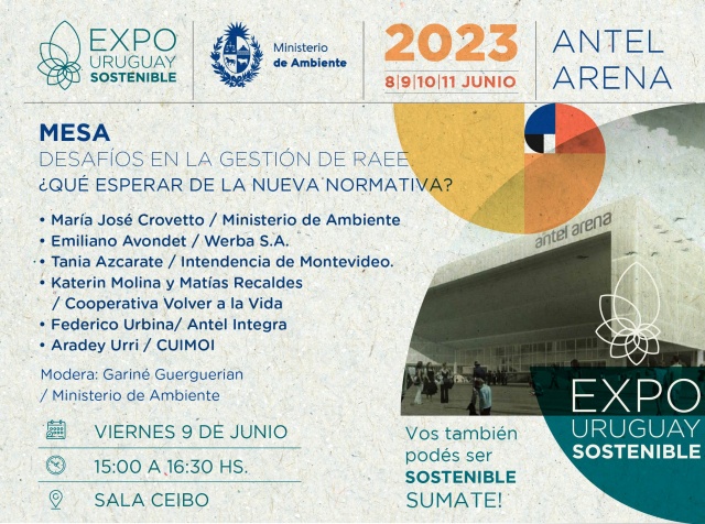 Ir al listado de noticiasLa Expo Uruguay Sostenible tendrá lugar en el Antel Arena los días 8, 9, 10 y 11 de junio a partir de las 10:00 hs. La entrada es libre a todo público.